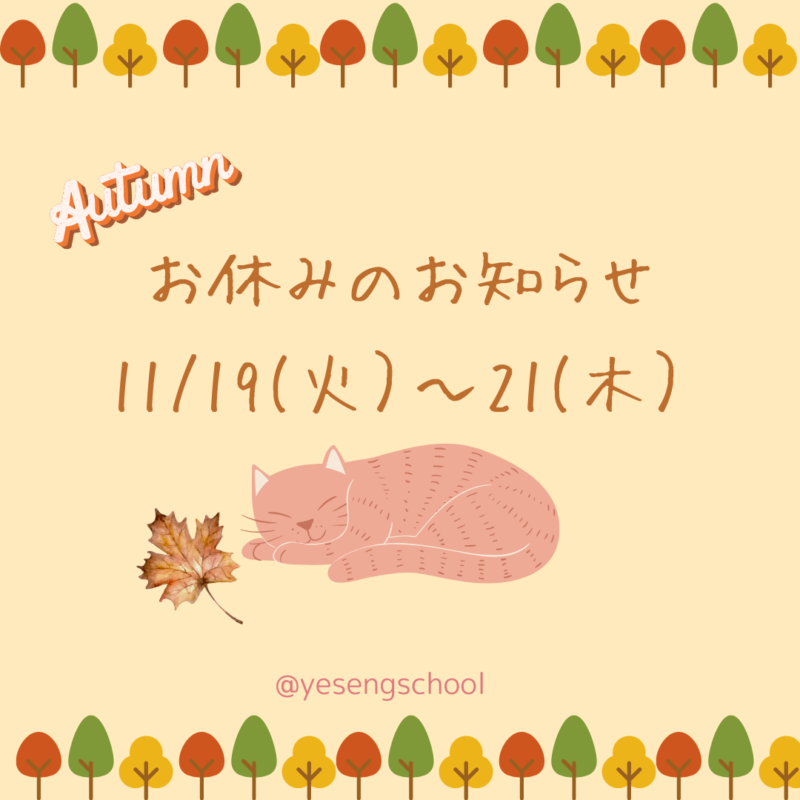 20日の「県民の日」に伴い、YESのレッスンとオフィスがお休みです。